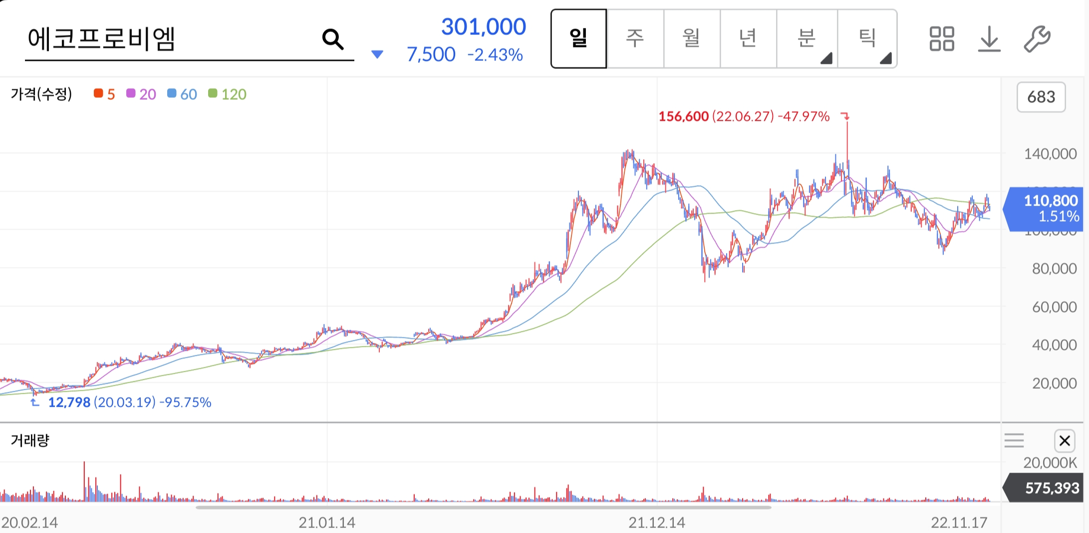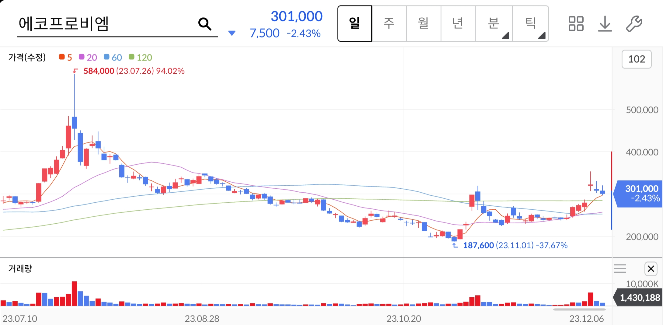 1. 에코프로비엠 주가