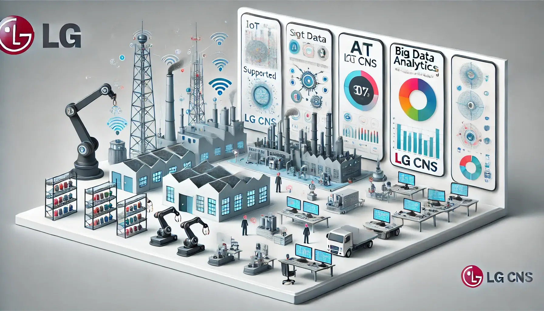 엘지씨엔에스는 제조업체의 디지털 전환을 지원하는 스마트팩토리 관련 서비스를 제공하며, 생산성 향상과 품질 관리를 돕고 있습니다. IoT, AI, 빅데이터 분석 기술을 기반으로 제조 과정 최적화, 설비 예측 유지보수, 에너지 효율 관리 등 다양한 스마트팩토리 서비스를 제공하고 있습니다. 이러한 기술력으로 글로벌 제조 기업의 성공적인 디지털 전환을 돕고 있으며, 스마트 제조 환경 구축을 지원하는 선도 기업으로 평가받고 있습니다.
