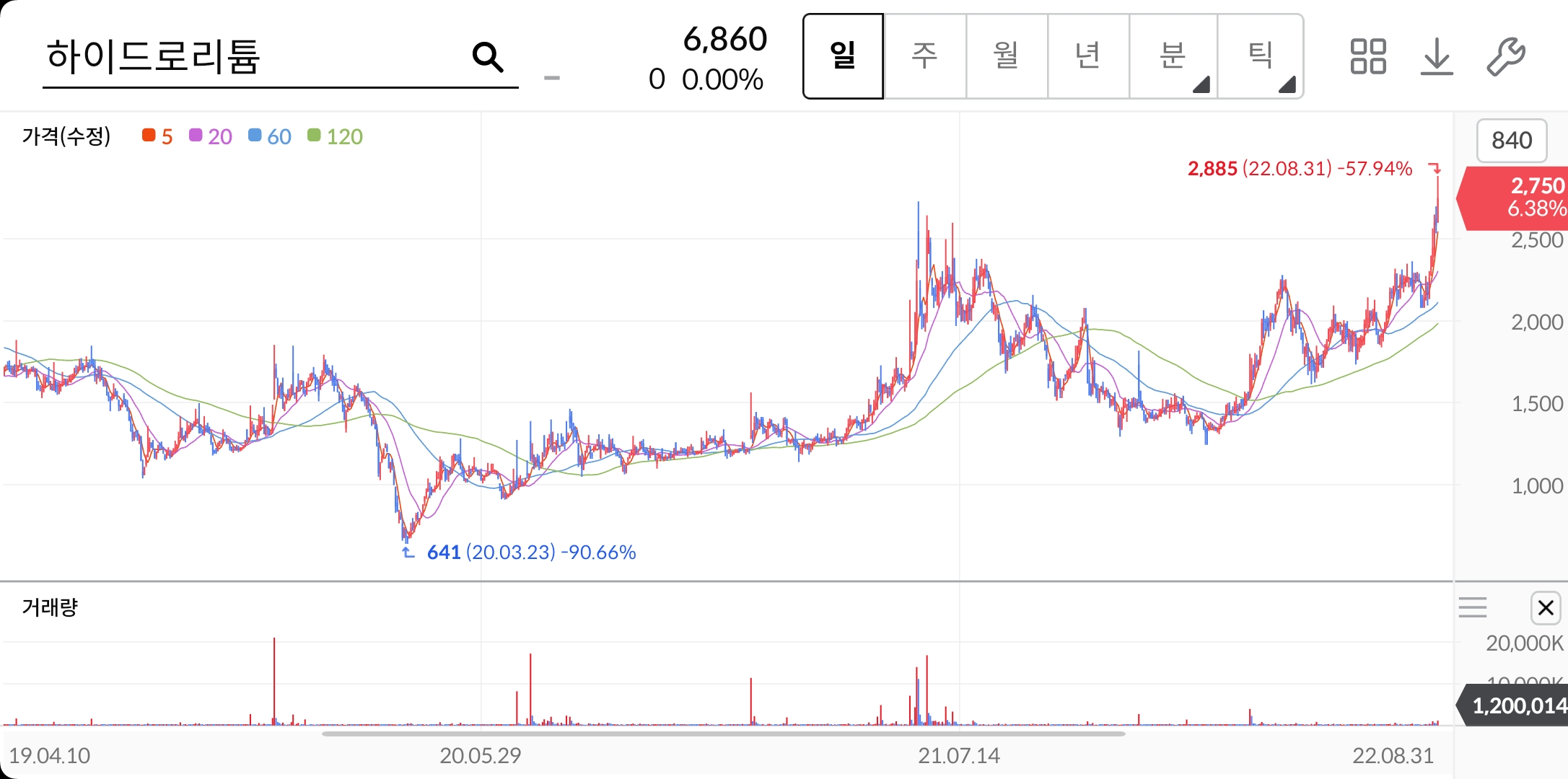 당사는 코로나로 인해 2020년 3월 641원까지 주가가 하락하였지만 주식시장 전체적인 상승에 힘입어 주가가 2,700원까지 주가가 상승하였습니다.